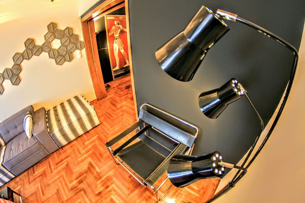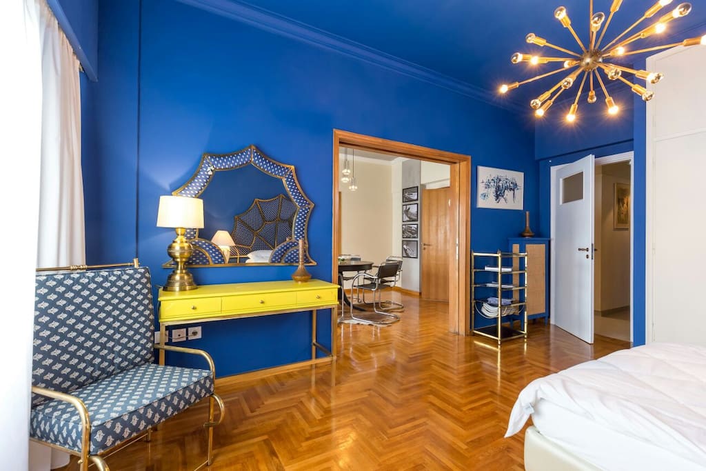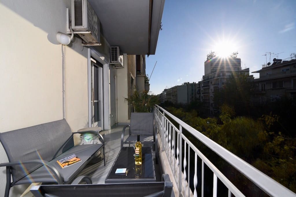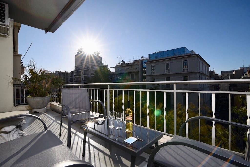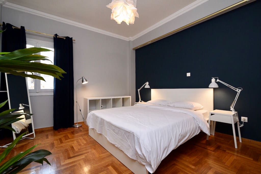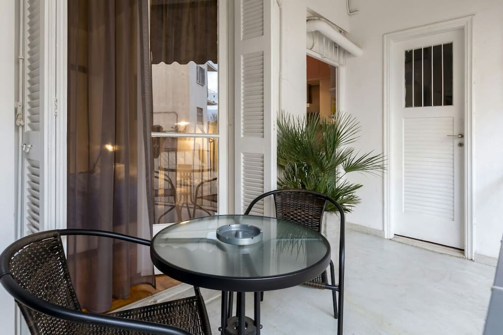 152m² Mid-century modern apartment in Athens with balcony and modern classic design. It is fully equipped and furnished. Located above the famous Patision Street of Athens and easy access to all means of transport. Close to coffee shops, supermarkets and banks.