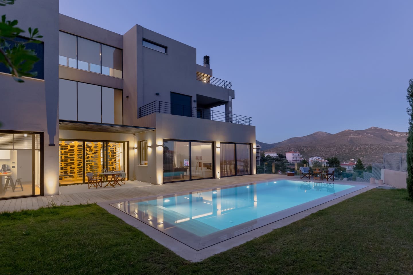 830m² Luxury Villa with a pool close to the Airport. There is an elevator Swimming pool (no chlorine) & Garden. All the openings (windows & doors) are Schüco. Sea and Mountain View. Flooring heating and cooling. There is parking space outside. The area is secured 24/7.